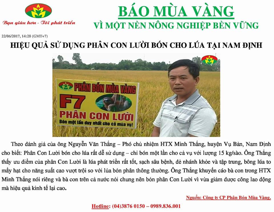 Đánh giá hiệu quả bón Phân Con Lười cho Lúa tại tỉnh Nam Định15:40 - 29/06/2017 Thẻ bài viết:TỔ HỢP PHÂN NHẢ CHẬM ĐA NĂNG,phân bón một lần,PHÂN BÓN TỐT NHẤT HIỆ NAY,phân bón tốt nhất hiện nay,phân nhả chậm,phân bón tốt nhất cho cây lúa,PHÂN CON LƯỜIChia sẻ:
