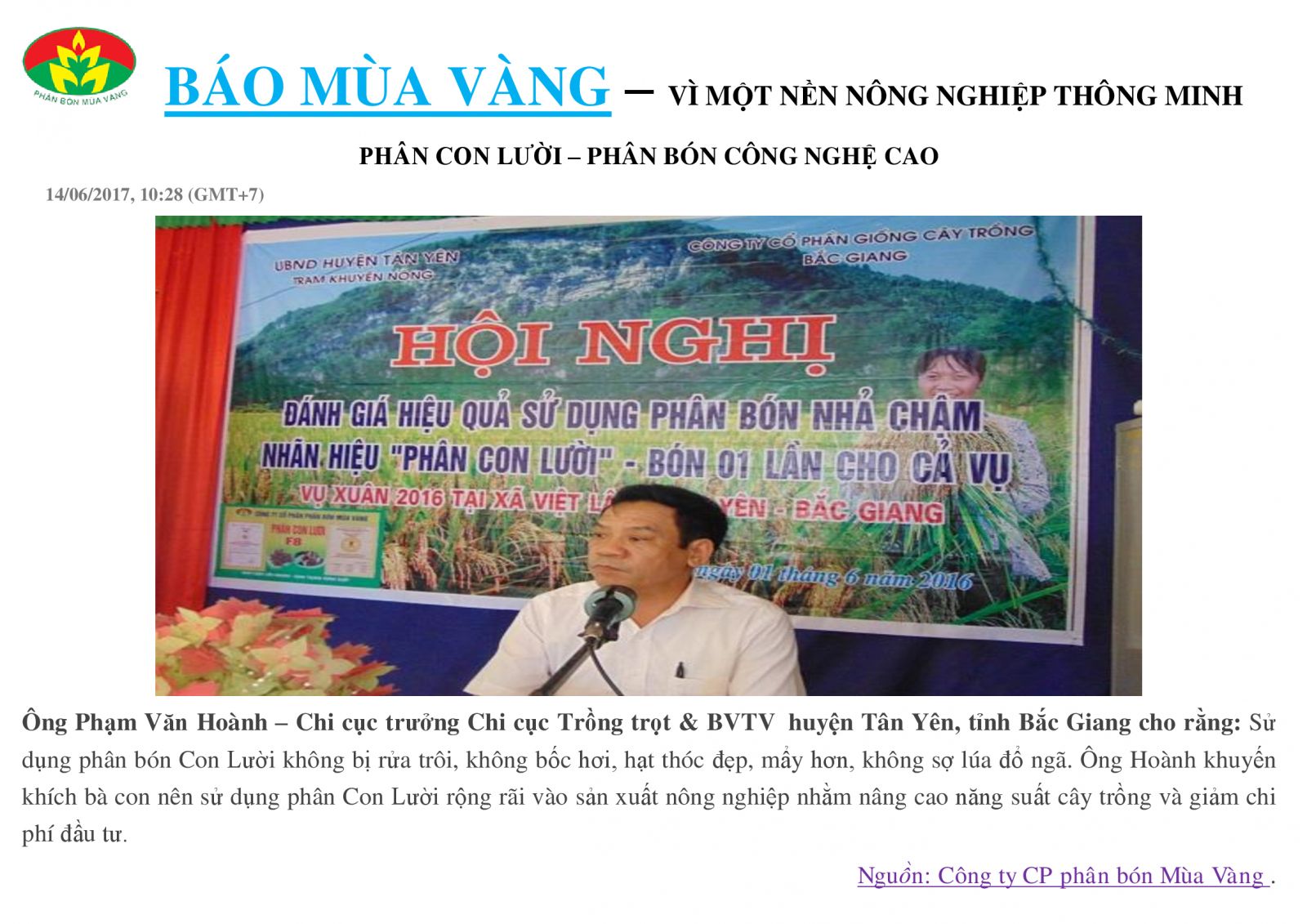 Đánh giá hiệu quả sử dụng dụng Phân Con Lười cho lúa tại Bắc Giang 15:55 - 29/06/2017 Thẻ bài viết:phân nhả chậm,phân bón tốt nhất hiện nay,phân con lười,phân bón nhà chậm cao cấp,phân viên nén nhả chậmChia sẻ: