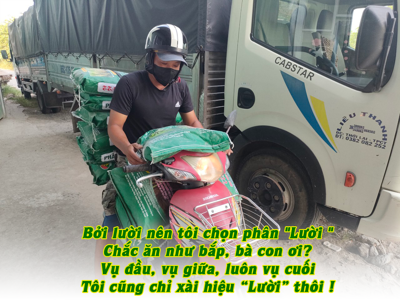 Công ty giao phân bón hiệu Con Lười F22 cho anh Đức tại Cô Tô - An Giang.