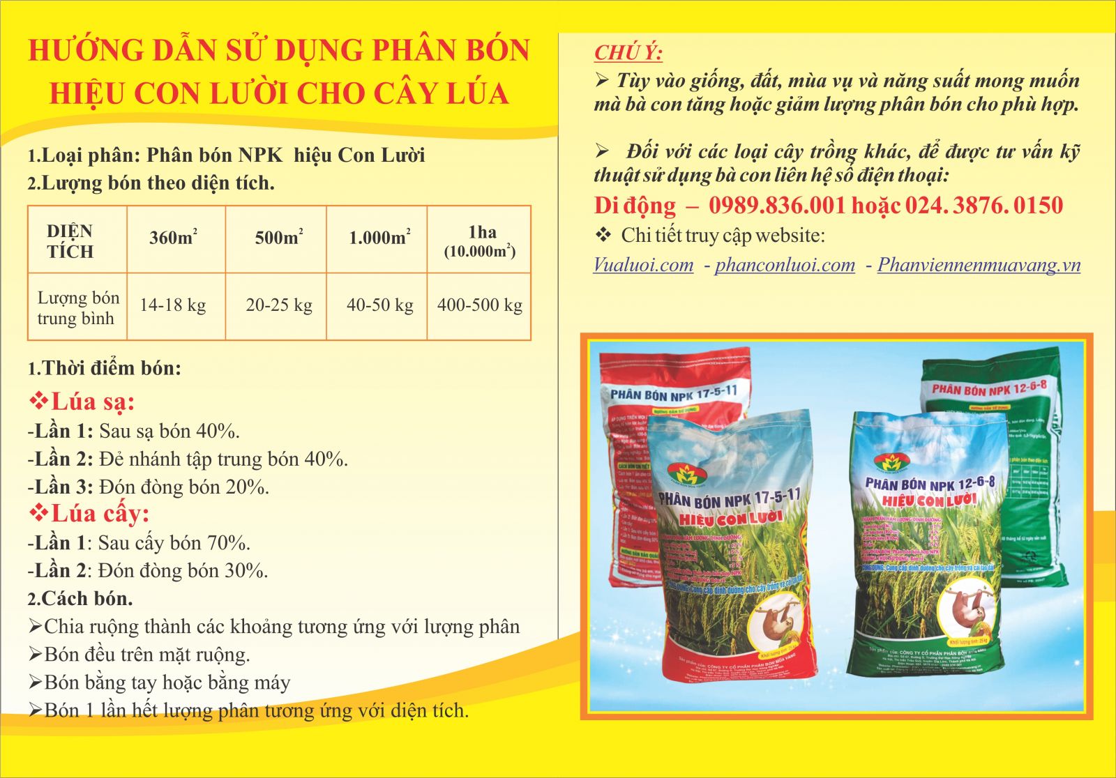 HƯỚNG DẪN SỬ DỤNG PHÂN BÓN HIỆU CON LƯỜI CHO CÂY LÚA NĂM 202010:18 - 24/04/2020 Thẻ bài viết:phân công nghệ sinh học,phân hiệu Con Lười,phân tốt nhất,phân bón lúaChia sẻ: