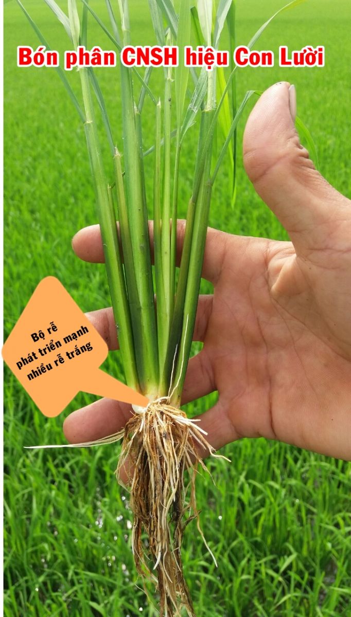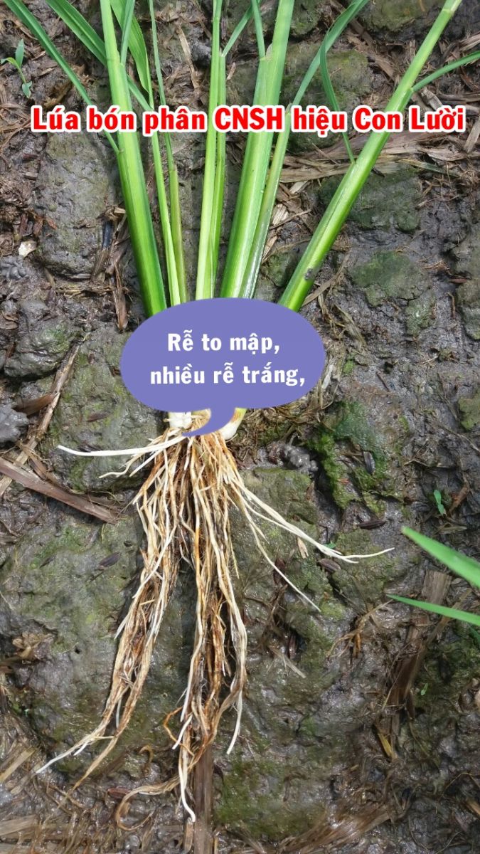Lúa bón phân hiệu Con Lười có bộ rễ trắng tươi đẻ nhánh đều, cây mập, sạch sâu bệnh