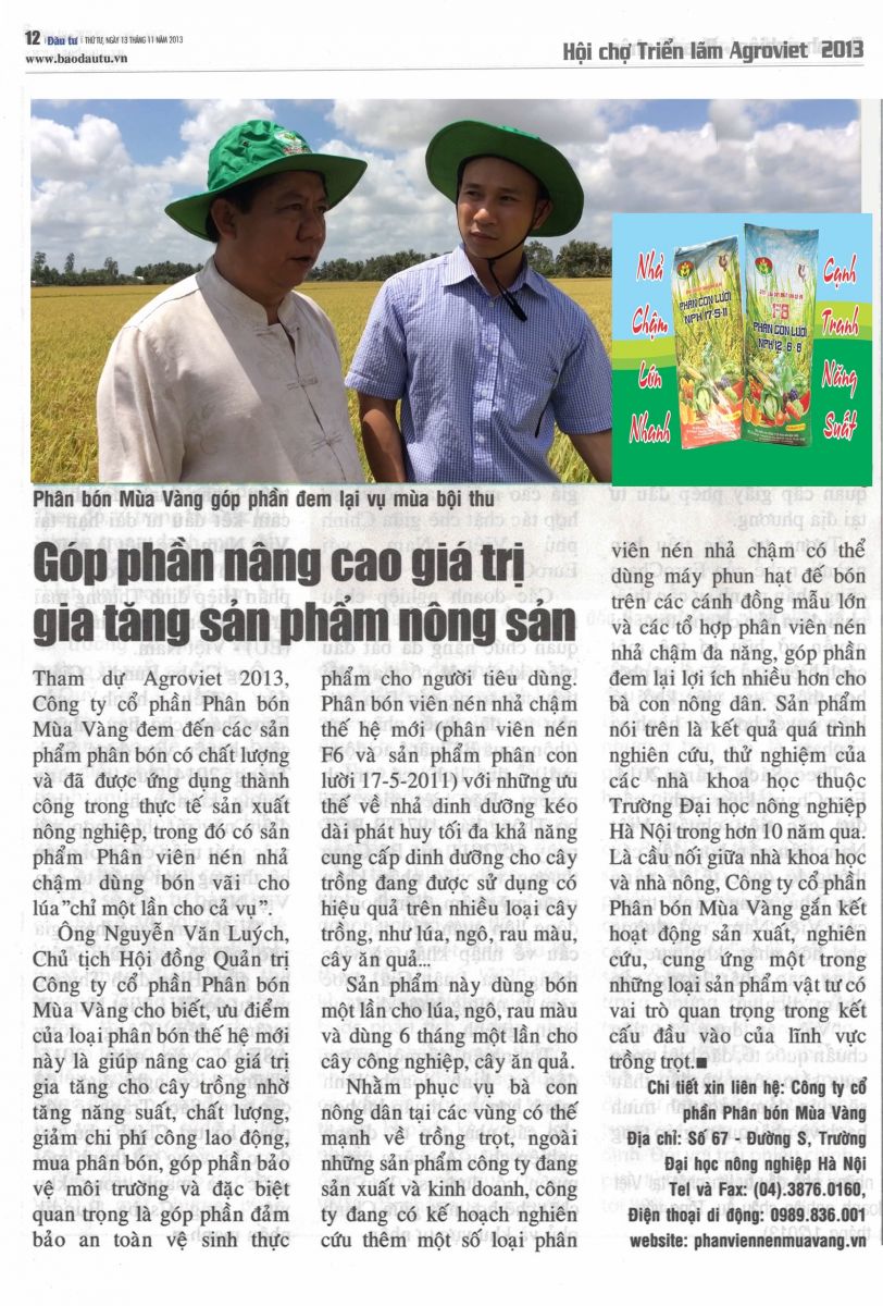 Phân bón hiệu Con Lười - giải pháp nâng cao giá trị Nông Sản Việt18:00 - 26/11/2018 Thẻ bài viết:Phân bón hiệu Con Lười,phân cao cấp,phân tốt nhất,phân bón đa năng,phân bón một lần,phân nhả chậm cao cấp,phân công nghệ sinh học,phân LườiChia sẻ: